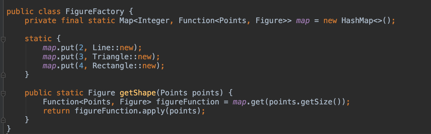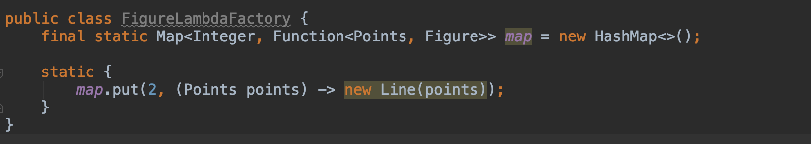 map.put(2, (Points points) -> new Line(points));