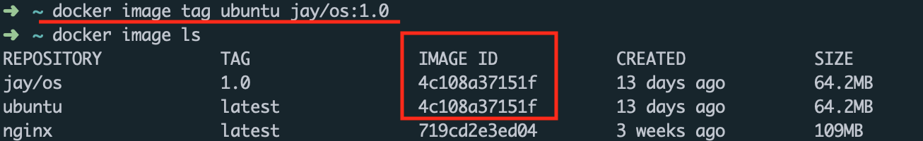 예를들어, jay/mywebserver:1.0 라는 nginx를 뜬 파일이 있다고 가정하자. 그렇다면 nginx라는 이름의 이미지에 대한 사용자가 jay이고 컨테이너명이 mywebserver이며 버전정보가 1.0이라는 것이다.