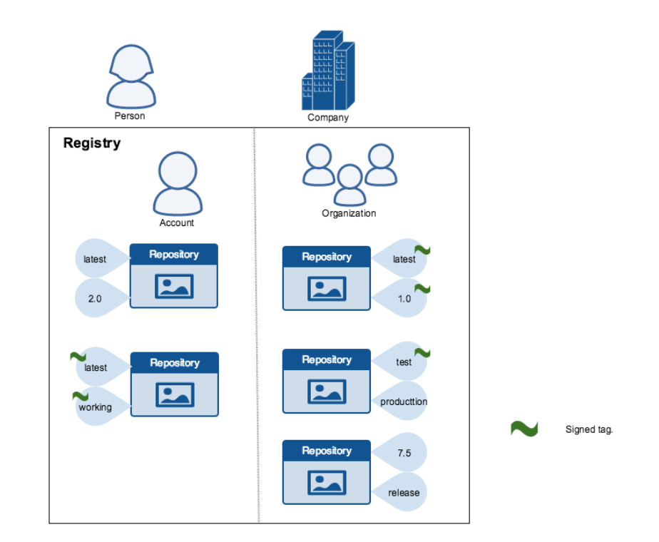 발행자는 특정한 tag 별로 서명을 할지 말지 결정하게 된다. 결과적으로 같은 이름의 tag 를 가진 이미지 이더라도 서명을 한 것과 하지 않은 것이 구분이 된다. 즉 someimage:latest를 서명한 것과 someimage:latest를 서명하지 않은 것은 이미지의 내용이 다를 수 있다는 말이다.