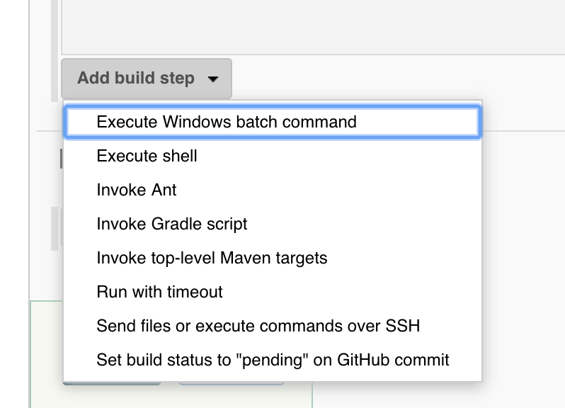 빌드 항목은 하단의 셀렉트 박스를 통해 빌드 시 할 수 있는 작업을 정의해 놓는다.