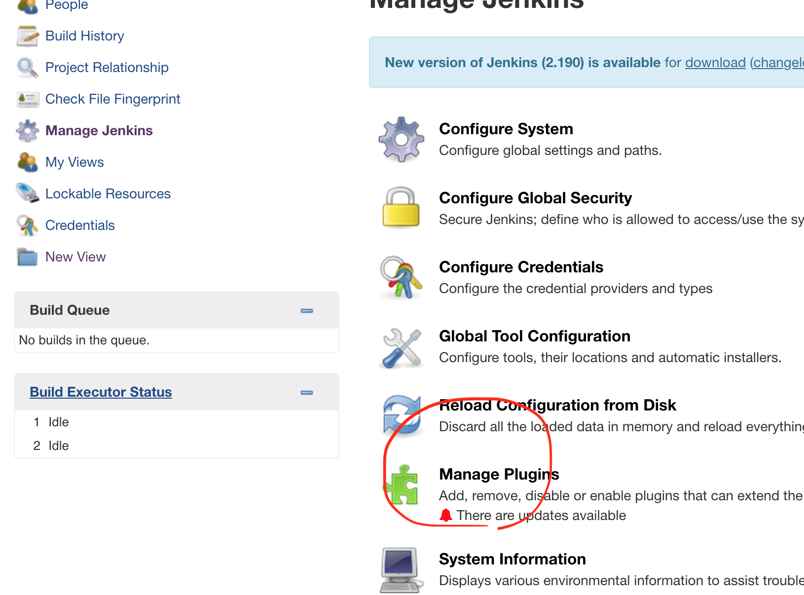 왼쪽 탭의 Manage Jenkins를 들어가서 Configure System 톱니바퀴 모양을 눌러보자.